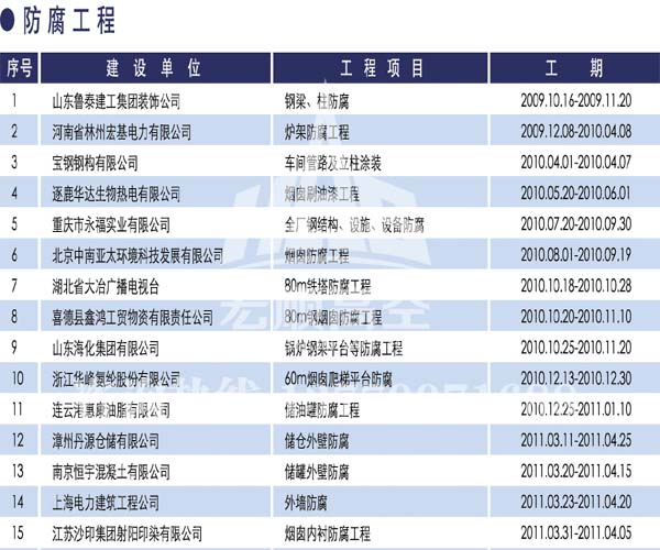 - 資質齊全 具有建筑工程施工總承包壹級資質、防水防腐保溫工程專業(yè)承包壹級資質,鋼結構專業(yè)承包貳級,公司整體通過了質量管理體系認證... 了解詳情